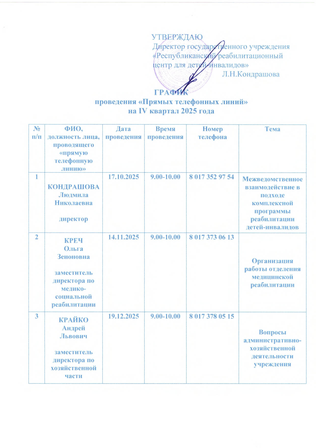 Предварительная запись на личный прием к Министру труда и социальной защиты Республики Беларусь, заместителям Министра осуществляется по телефонам: +375 17 309 93 00 (с 8.00 до 13.00) или в кабинете 111 Министерства с 8.00 до 13.00.