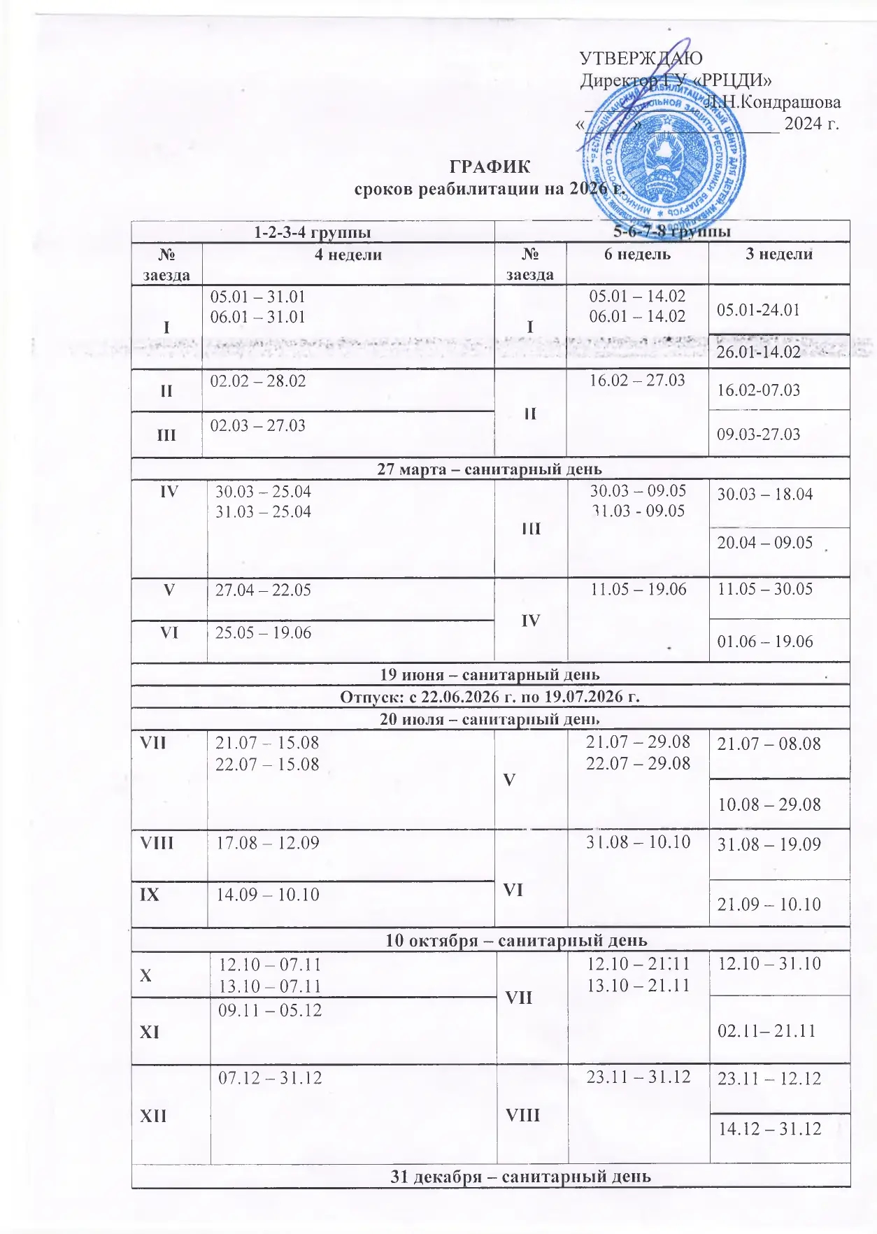 Графики реабилитации на 2026-2027 год